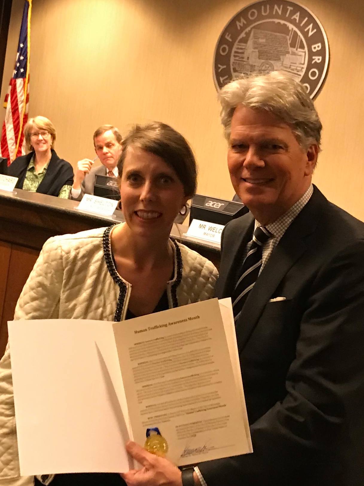 Meyers after proclaiming January as Human Trafficking Awareness month. [Photo via the OTMJ]