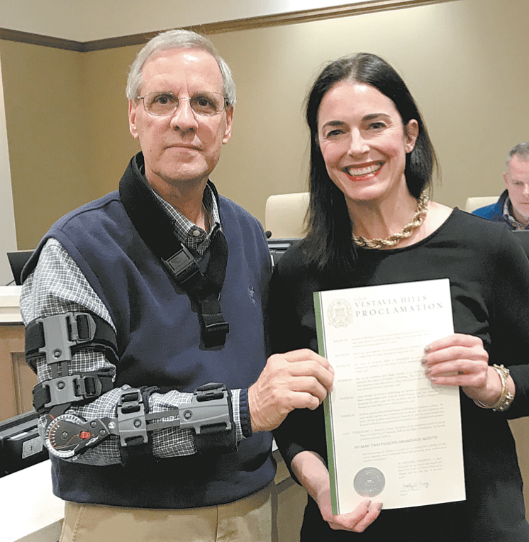 Mayors all over Alabama are stepping up to fight human trafficking. Julia Meyers, Junior League Birmingham (JLB) chairwoman of the Anti-human Trafficking Committee, has been working tirelessly with the state legislative Human Trafficking Task Force in order to get regional government officials to proclaim January human trafficking awareness month.