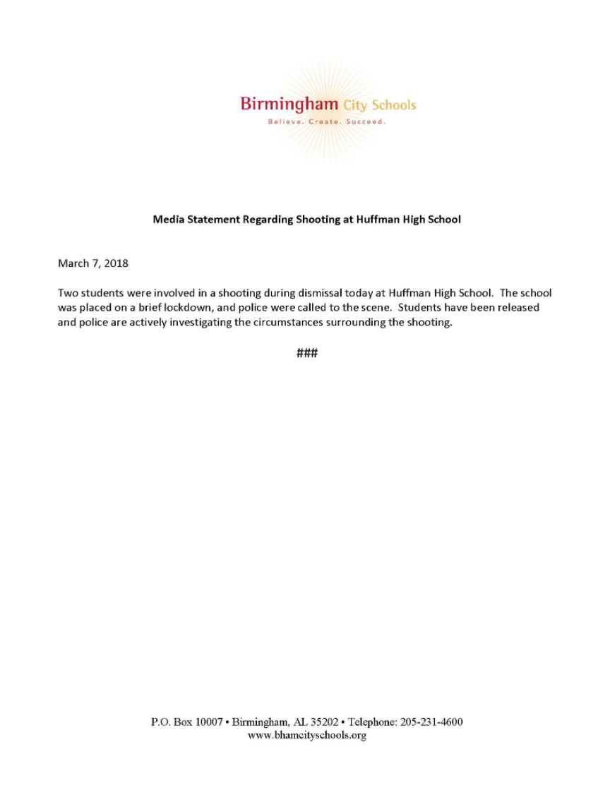 Birmingham Mayor Randall Woodfin held a press conference at the school at 5:45 p.m., less than two hours after the incident.