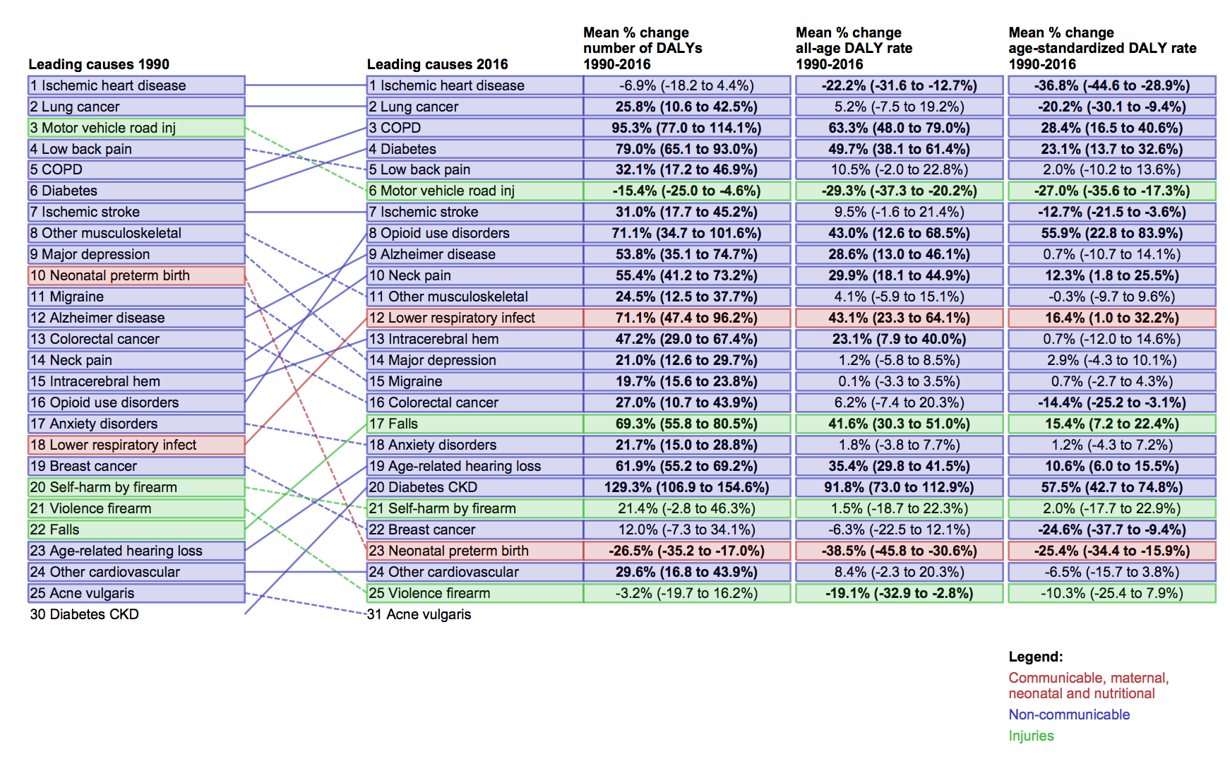 Specifically the study tracked 333 causes and 84 risk factors for premature death and disability.