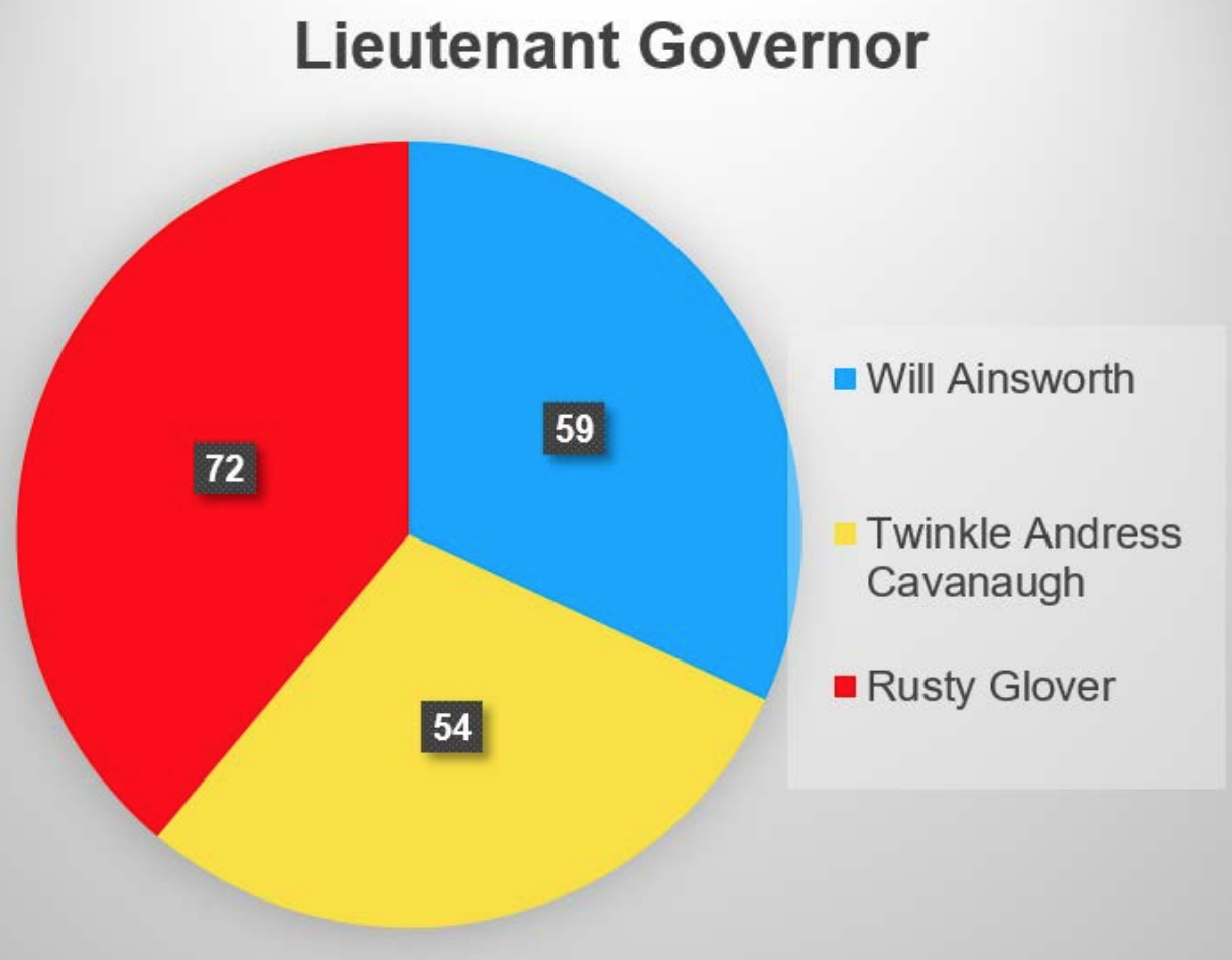 In the race for lieutenant governor, Rusty Glover took the top spot.