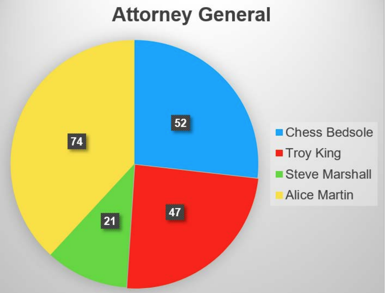 Alice Martin won the straw poll for Attorney General by over 10 points.