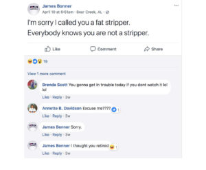 “The Alabama Republican Party Candidate Committee voted unanimously to publicly censure and strongly condemn Mr. Jim Bonner, candidate for Public Service Commission, Place 1,” said Lathan in the release. “Mr. Bonner’s recent comments on his social media as well as radio shows are not condoned by the Alabama Republican Party. Mr. Bonner is welcome to his opinions and his first amendment right of free speech. The Alabama Republican Party is welcome to our opinion as well, and we reject the egregious comments Mr. Bonner continues to spew.”