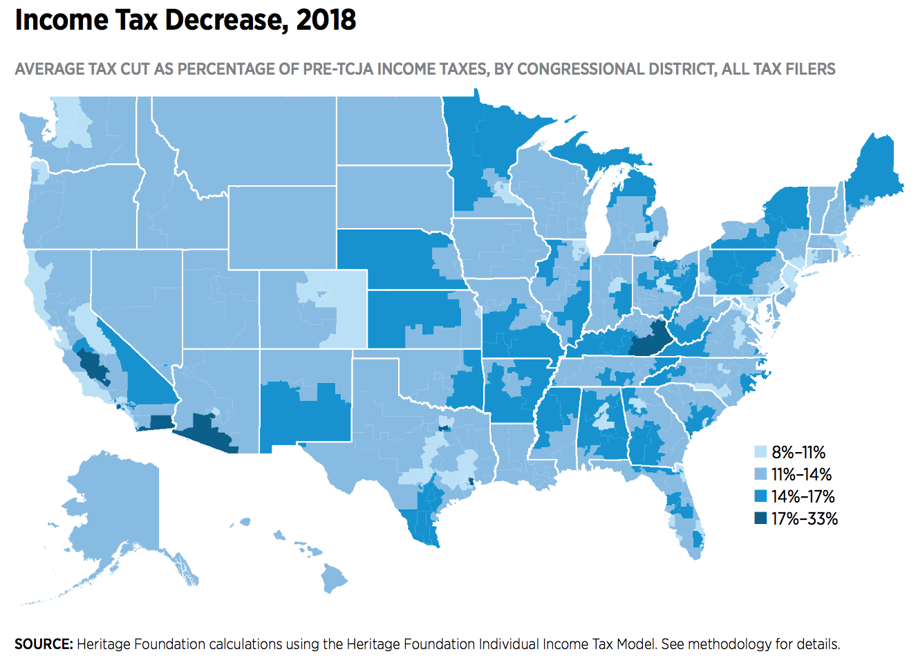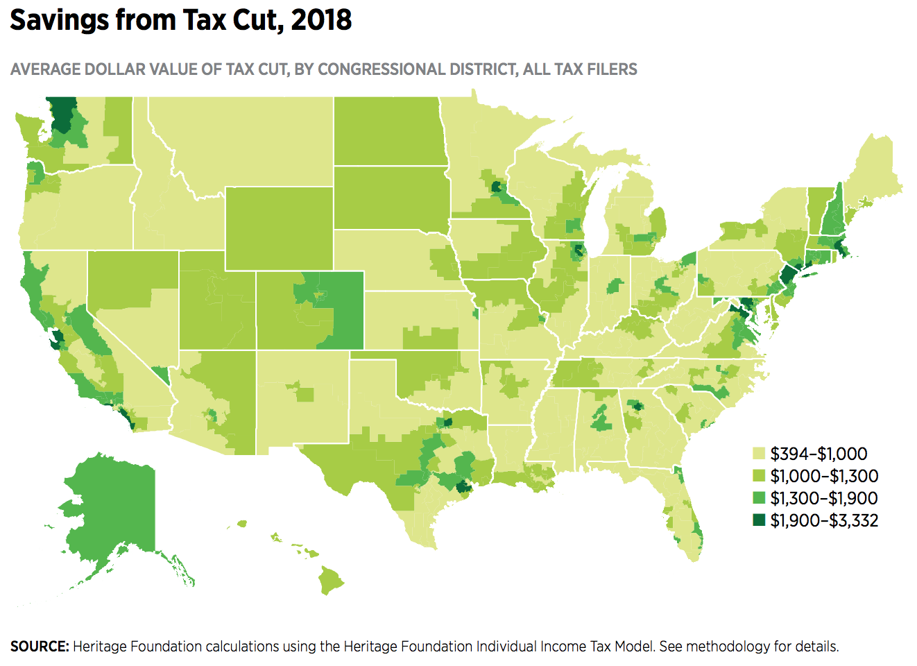 In the report released by the conservative public policy think-tank Heritage Foundation analysts found “the average household and the average married couple with two kids in every congressional district in every state benefit from the tax cut, both in 2018 and over the next 10 years.”