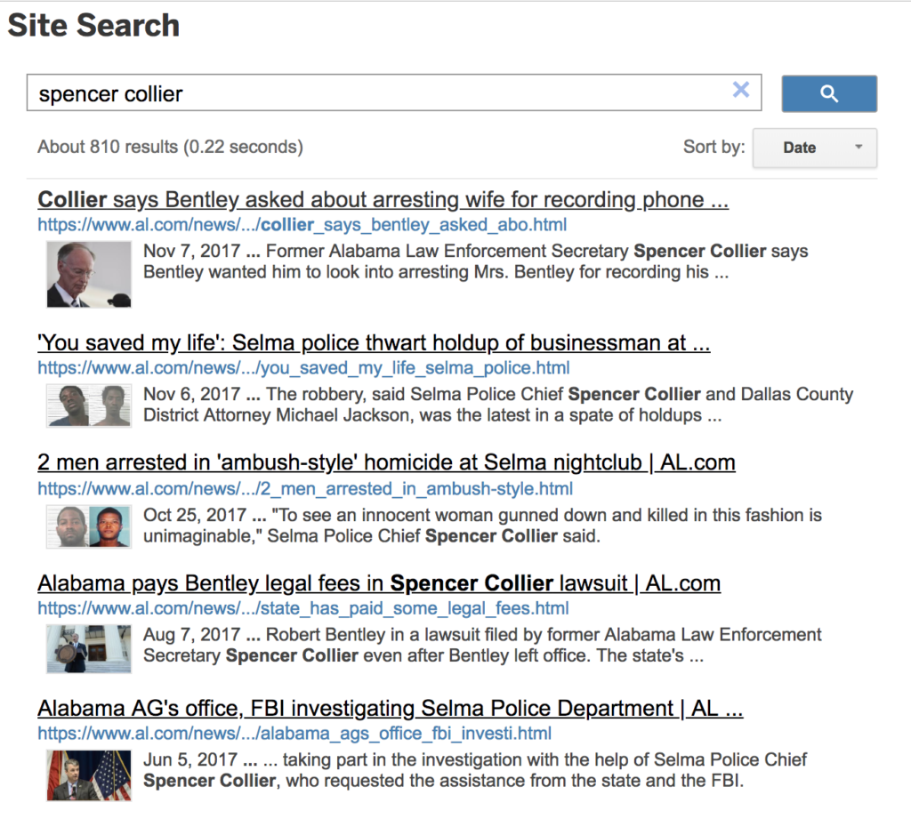 Collier, who is currently the Selma police chief, sued Bentley in 2016. He contends the former Governor wrongfully fired him in March 2016 as secretary of the Alabama Law Enforcement Agency (ALEA) and then tried to discredit him with a sham state investigation.