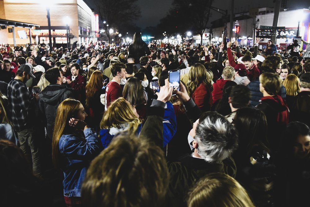 Many of the fans screaming and cheering as they pressed against each other in the street didn’t wear face masks. Dr. Scott Harris, the head of the Alabama Department of Public Health, said he expected more cases of COVID-19 to result from the street party.