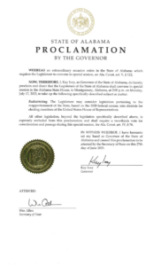 Governor Kay Ivey on Tuesday issued the proclamation to call the Alabama Legislature into a special session beginning at 2:00 p.m. Monday, July 17, 2023, to address congressional redistricting.
