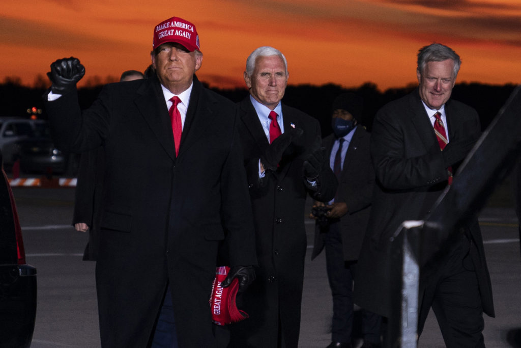 The coronavirus has reached the upper echelons of the White House again, with an outbreak among aides to Vice President Mike Pence just over a week from Election Day. A top White House official declared: “We’re not going to control the pandemic.” Officials on Sunday also scoffed at the notion of Pence dialing back in-person campaigning despite positive tests among several people in his office. Pence, who leads the White House’s coronavirus task force, was back out on the road Sunday and has an aggressive travel schedule planned for the final days of the campaign. White House chief of staff Mark Meadows, pressed to explain why the pandemic cannot be reined in, said, “Because it is a contagious virus just like the flu.” He told CNN’s ”State of the Union” that the government was focused on getting effective therapeutics and vaccines to market. Pence, who tested negative on Sunday, according to his office, held a rain-soaked early evening rally in Kinston, North Carolina, a state that Trump won in 2016 and is crucial to his reelection hopes. The vice president had a shout-out for supporters who braved what he called “this night of tempest, to stand in the rain and stand firm” for Donald Trump. He gave no nod to the coronavirus infection rippling through his staff, and dismissed Democrat Joe Biden’s description of the COVID-19 threat as an unwarranted dose of gloom and doom. The president, for his part, rallied backers in New Hampshire and visited an orchard in Levant, Maine, where he signed autographs and assured a crush of mostly unmasked supporters that a “red wave” was coming on Nov. 3. He and first lady Melania Trump wrapped up the busy weekend by hosting costumed children for a socially distanced Halloween trick-or-treating on the White House grounds. Biden attended church and participated in a virtual get-out-the-vote concert. He said in a statement that Meadows was effectively waving “the white flag of defeat” and “a candid acknowledgement of what President Trump’s strategy has clearly been from the beginning of this crisis.” In a brief exchange with reporters before the orchard visit, Trump demurred when asked if Pence should step off the campaign trail as a precaution. “You’d have to ask him,” Trump said. The White House said none of the staff traveling with Trump on Sunday had been in close contact with any individuals in the vice president’s office who had tested positive. But public health experts said that Pence’s decision to keep up in-person campaigning was flouting common sense. Lawrence Gostin, a public health expert at Georgetown University’s law school, said Pence in his decision to forgoing quarantine was violating his own task force’s recommendations. “It’s one standard for the vice president and another for all the rest of us,” Gostin said. The U.S. set a daily record Friday for new confirmed coronavirus infections and nearly matched it Saturday with 83,178, data published by Johns Hopkins University shows. Close to 8.6 million Americans have contracted the coronavirus since the pandemic began, and about 225,000 have died; both totals are the world’s highest. About half the states have seen their highest daily infection numbers so far at some point in October. Trump, campaigning in Londonderry, New Hampshire, said the rising rate of infections was nothing to be concerned about. ”You know why we have cases so much?”′ Trump asked a shoulder-to-shoulder crowd. “Because all we do is test.” Entering the final full week before the Nov. 3 election, it’s clear the Trump team remains committed to full-throttle campaigning. Trump himself has resumed a hectic schedule since recovering from his own recent coronavirus case, and planned to campaign Monday in Pennsylvania. Pence will campaign in Minnesota that day and return to North Carolina on Tuesday. Despite the rising virus numbers, the White House says the U.S. economy needs to fully reopen and it has tried to counter Biden’s criticism that Trump is not doing enough to contain the worst U.S. public health crisis in more than a century. Trump and his aides again on Sunday lashed out on Biden, falsely asserting Biden was determined to lock down the economy, while the president is centering his attention on getting therapies and vaccines to market. “We want normal life to resume,” Trump said. “We just want normal life.” Biden, in fact, has said he would only shut down the country if that is what government scientists advise. He has said that if elected he would make the case for why a national mask mandate might be necessary and would go to the governors to help increase Americans’ mask-wearing. Pence’s office says there are no plans to curtail campaigning. In addition to chief of staff Marc Short, who tested positive Saturday, a “couple” other aides also have also contracted the disease, Meadows said. Meadows said Pence will wear a mask — “because the doctors have advised him to do that” — but take it off when he gives a speech, as the vice president did on Sunday in North Carolina. Even with Pence’s latest negative test, symptoms, including fever, cough and fatigue, may appear two to 14 days after exposure to the virus, according to the Centers for Disease Control and Prevention. Some asymptomatic individuals test positive two to three days before developing symptoms. The White House says Pence was considered in “close contact” with Short under CDC guidelines. The guidelines require that essential workers exposed to someone with the coronavirus closely monitor for symptoms of COVID-19 and wear a mask whenever around other people. After consulting with the White House Medical Unit, Pence intended to maintain his schedule “in accordance with the CDC guidelines for essential personnel,” said Devin O’Malley, a Pence spokesman. Meadows sidestepped questions about whether Pence’s campaigning fit into the spirit of the CDC’s