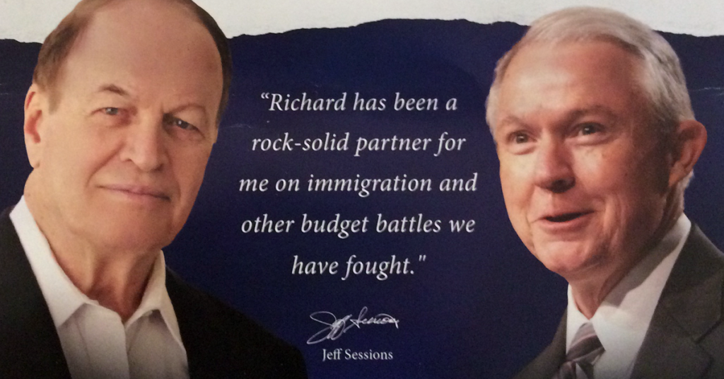 Incumbent U.S. Sen. Richard Shelby has sent out a new campaign mailer asking Alabama voters to vote for him in the upcoming Republican primary on March 1. Titled “Alabama’s Conservative Fighters,” the mailer features Shelby alongside fellow Republican U.S. Sen. Jeff Sessions. Sessions, a well-regarded conservative, is quoted saying, “Richard has been a rock-solid partner for me on immigration and other budget battles we have fought.” The back-side of the mailer lists a myriad of Shelby’s Senate accomplishments — from taking on President Barack Obama‘s Syrian refugee program to challenging Planned Parenthood funding to denying money to Obamacare — and wraps up with “Let’s keep Alabama’s conservative Senators together in the fight, re-elect Sen. Richard Shelby for U.S. Senate March 1st!” Shelby will face Iraq War veteran Jonathan McConnell, former state Sen. Shadrack McGill, John Martin and Marcus Bowman in the March 1 primary — the winner of which will likely take the Senate seat in November. Here’s the full mailer: